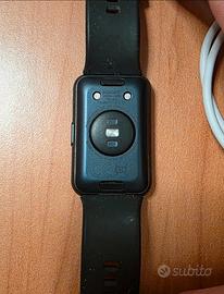 Smartwatch Huawei Watch Fit, senza un graffio, fibbia del cinturino con un segno, con il suo caricatore magnetico USB