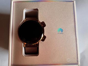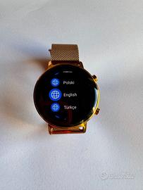 Vendo Huawei Watch GT 2, in perfette condizioni, usato pochissimo e senza graffi. Batteria efficiente, schermo impeccabile e completo di cinturino originale più cinturino di ricambio mai utilizzato.