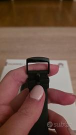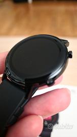 Smartwatch Huawei GT2 42mm con cinturino nero. L'orologio è stato usato con cura maniacale e viene venduto nella sua originale scatola con il suo cavo e stazione di alimentazione. L'orologio svolge tutte le funzioni di monitoraggio del corpo e dello sport. Si collega a tutti i telefoni (anche samsung e xiaomi) con la app huawei health. Intercetta chiamate e messaggi, anche whatsapp. Può impostare sveglie, monitorare il meteo, monitorare il sonno, ha la bussola integrata e il barometro. Rimane carico anche per diversi giorni (con allenamento tutti i giorni e monitoraggio delle attività può rimanere carico anche fino a 5 giorni). Si vende perché passati ad altra marca per via di cambio telefon