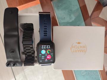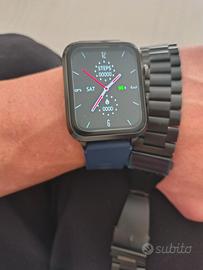 smartwatch nuovo , due cinturini silicone blu e alluminio nero , misura parametri vitali , glicemia , elettrocardiogramma , ossigenazione , composizione corporea . e la pressione tramite airbag sul bracciale .