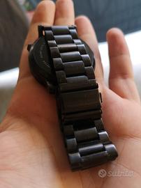 Cinturino in acciaio nero sostituito recentemente. Ghiera con normali segni di usura. Batteria da rivedere, la carica dura solo qualche ora. Fornisco scatola originale e cavetteria.