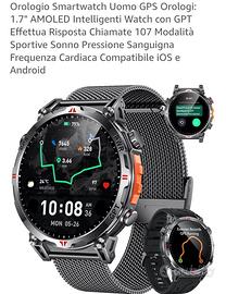 Questo smartwatch incorpora un GPS integrato con un sistema di posizionamento satellitare a frequenza singola di livello militare, che consente un tracciamento preciso della posizione anche all'interno di aree urbane densamente edificate o in ambienti boschivi fitti. L'orologio di tracciamento integra anche una bussola, un altimetro barometrico e un barometro, visualizzando in tempo reale la posizione, l'altitudine e le letture della pressione atmosferica. 【GPT Voice Assistant&AI Watch Face】Basta toccare l'interfaccia GPT di smartwatch uomo e pronunciare il tuo comando: ogni domanda riceve risposta istantaneamente. Ad esempio, chiedi “Come faccio a costruire muscoli?” e orologio uomo registrerà la tua richiesta e fornirà la risposta sul posto. A differenza degli orologio smartwatch uomo tradizionali, si accoppia con l'app DaFit per sbloccare quadranti orologi creativi alimentati dall'IA. È possibile selezionare l'immagine preferita come quadrante. 【1,7" AMOLED Display & Cassa in Lega di Zinco】Smartwatch da uomo è dotato di un display AMOLED da 1,7 pollici resistente ai graffi che rimane nitido anche alla luce diretta del sole, offrendo immagini straordinariamente nitide e straordinarie. La sua cassa in lega di zinco si integra perfettamente con un'estetica raffinata e una robusta resistenza, sopportando alte temperature, ambienti a bassa pressione ed alla polvere. Disponibile con cinturino in silicone o bracciale in acciaio inossidabile. 【Risponde/Fare Chamade e Alerti Di Messaggi】Bluetooth integrato consente di accoppiare orologio uomo smartwatch con il telefono per le chiamate mani libere - rispondere senza sforzo durante la guida o l'allenamento. Questo orologio smart uomo è compatibile con la maggior parte degli smartphone con iOS 9.0 o Android 4.4 e successivi. Orologio smart possono ricevere istantaneamente notifiche da applicazioni come Facebook, Instagram, Twitter, WhatsApp, assicurandoti di non perdere mai un messaggio.