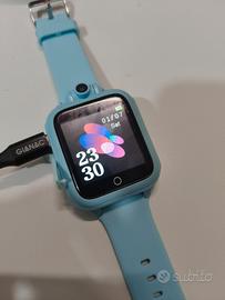 smartwatch per bambini, con scheda di memoria e possibilità di fare foto dall'orologio stesso, non serve nessuna connessione con i cellulari, riproduce giochini interni, video, calcolatrice, registra audio, musica. ottime condizioni compreso di scatola.