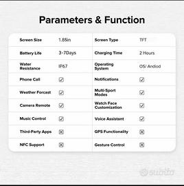 Nuovo orologio intelligente multifunzione da uomo e da donna 2025, orologio intelligente da 1,85 pollici con funzione di risposta/effettuazione di chiamate. Modalità sportive/promemoria di messaggio, impermeabile IP67 per Android e iPhone.