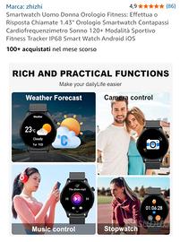 Prezzo su Amazon € 69,99. Vendo per regalo doppio. Smartwatch Uomo Donna Orologio Fitness: Effettua o Risposta Chiamate 1.43" Orologio Smartwatch Contapassi Cardiofrequenzimetro Sonno 120+ Modalità Sportivo Fitness Tracker IP68 Smart Watch Android iOS