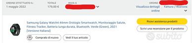 Samsung Galaxy Watch 4, 44mm, verde in perfette condizioni, pari al nuovo. Dotato di Bluetooth, Gps, no lte. Nessun graffio o graffietto sul diplay, nessun graffio sul frame in alluminio verde. Questo poichè sin dal primo giorno è stato sempre utilizzato con cover protettiva, che protegge sia schermo che frame, che monta attualmente l’orologio, visibile in foto, anch’essa color verde. Fornisco 2 cinturini oltre all’originale. Lo smartwatch monta attualmente un cinturino verde militare, come visibile in foto. Quello originale è quello verde scuro, petrolio sempre visibile in foto. Fornisco inoltre unico pezzo che ingobla sia conturino, che cover nero, sempre visibile in foto. Fornisco scatola originale e cavo per la ricarica originale samsung. Unico proprietario, comprato nel 2022, vendo per inutilizzo. Per qualsiasi informazione non esitare a contattarmi. Prezzo non trattabile poichè l’orologio è come nuovo, sfido chiunque a trovarne uno così. Offro massima serietà e la pretendo.