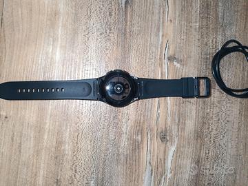 Vendo Samsung Galaxy Watch 4 Classic 42mm colore nero, perfettamente funzionante. Display integro, cinturino in ottime condizioni, ghiera rotante meccanica funzionante, con qualche graffietto minore superficiale (visibile in foto), cavo del caricabatterie leggermente "scollato", ma funzionante.
