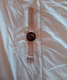 Smartwatch SAMSUNG GALAXY WATCH 4 40mm + caricatore Colore Rosa Gold Utilizzato raramente, sempre con vetrino di protezione. Perfettamente funzionante. CARATTERISTICHE: Display da 1,2 pollici( Risoluzione 396 x 396 - Touchscreen - Processore Exynos W920 Dual Core 1.18 GHz - Sistema Operativo Wear OS+ by Google - One UI Watch 3.0) Applicazioni installate: Always On Display, Bixby, Controlli vocali, Inserimento vocale, Registratore vocale, Blocco in acqua, Bussola - Certificazione in acqua fino a 5 ATM (IP68) - Galleria, Lettore musicale, Controller Buds, Controller Fotocamera - Modalità Teatro, Modalità Riposo, Non disturbare - Orologio, Cronometro, Timer, Sveglia, Fusi orari - Play Store, Maps, Messaggi Android - Promemoria, Calendario, Meteo, Calcolatrice - Rilevamento cadute, Invia richieste SOS (Combinazione tasti Rilevamento caduta) - Risparmio energetico, Rubrica, Telefono, Messaggi, Microsoft Outlook - Samsung Pay, Samsung Health, Samsung Health Monitor - Sensore di frequenza cardiaca, Stress (Rilevamento continuo)) Peso 0.026