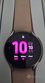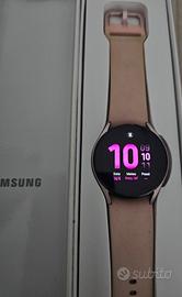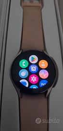 Vendo, per passaggio ad altro dispositivo, smartwatch Samsung Galaxy Watch 5, colore Pink Gold, completo di scatola e accessorio ricarica originali. Totalmente funzionante, non presenta danni e/o graffi, sempre adoperato con pellicola (ora asportata). Da immagini, il cinturino originale rosa presenta delle leggerissime macchie dovute alla normale usura durante il porto. Per questo motivo anche regalo 2 cinturini nuovi mai adoperati (grigio e nero con disegni).