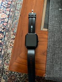 Dimensioni schermo: 4,65 cm con Touch screen, cinturino in silicone nero, collegabile tramite Bluetooth a qualsiasi dispositivo Android o Ios.