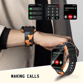 Schermo HD da 1,83 pollici e standard militare di alta qualità: touch screen da 1,83 pollici, risoluzione ad alta definizione 320 * 386, più e diversi stili di quadranti, puoi anche impostare la tua foto come quadrante. watch.Lunga durata della batteria e impermeabilità IP68, che può aiutarti perfettamente negli sport all'aria aperta e monitorare perfettamente i tuoi dati sportivi.Dotato di schermo HD da 1,83" + quadrante solido