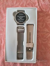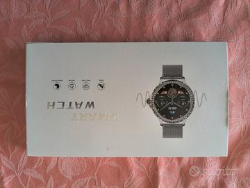 smartwatch da donna argento con due cinturini, salva schermo contapassi saturimetro fitness cardiofrequenzimetro impermeabile effettua chiamate con risposta notifiche di whatsapp per android e IOS