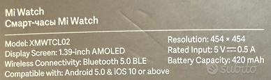 Vendo in perfette condizioni di funzionamento ed estetiche Smartwatch XIAOMI Mi Watch, Orologio Smart, Display AMOLED HD 1.39'', Fino a 16 giorni di autonomia, GPS integrato, NERO. Completo di scatola ed accessori.