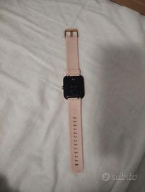 Smartwatch ben tenuto, Alexa integrata. Marca YONMIG, due piccole righe sul display in alto che non ne compromettono l'utilizzo.