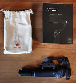 Stabilizzatore video Snoppa Atom, adatto per telefoni e per action cam; vendo completo di accessori come al momento dell'acquisto, ad aprile 2020. CONTENUTO: - Snoppa Atom a tre assi; - piccolo treppiede avvitabile - confezione originale - manuale in varie lingue, tra cui l'italiano; - cavo per ricarica stabilizzatore; - cavo USB per ricarica dispositivi Apple; - cavo USB-C per ricarica Android più recenti. CARATTERISTICHE: - peso 440 grammi; - batteria 2000 mAh; - connessione Bluetooth; - possibilità di ricarica telefono tramite wireless o con i due cavetti inclusi; - applicazione Snoppa disponibile per Android e IOS; - possibilità di fare time-lapse, seguire movimenti di oggetti o facce, rotazione video, ecc.