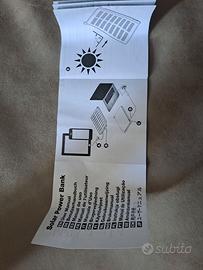 Solar Power Bank. Ricarica cellulare / tablet con USB micro-B 5V / 1A.