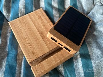 Bellissimo set composto da power bank ad energia solare e stand a doppia misura (adatto sia per cellulare che per tablet) per qualsiasi tipo di cellulare. Entrambi sono in finitura legno bambù. Resto a disposizione per qualsiasi domanda.