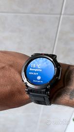 Orologio sportivo, display oled super luminoso, monitora ogni tipo di attivita fisica, permette di ricevere notifice dal telefono messaggi e chiamate.