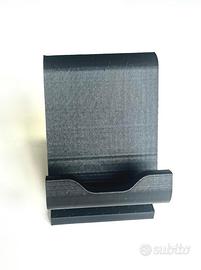 Stand per telefono fatto in plastica di colore nero utile per poggiare telefoni sia in verticale che in orizzontali