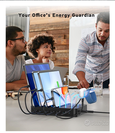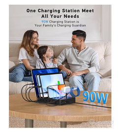Migliora la tua ricarica con la nostra stazione da 90 W. È dotata di 4 porte USB-C e 2 porte USB-A per caricare 6 dispositivi contemporaneamente, come telefoni, tablet e cuffie. Sostituisci più caricabatterie da parete ed elimina l'ingombro dei cavi. Questo hub mantiene la scrivania, il comodino o il piano della cucina in ordine e liberi da prese. Ricarica rapida da quattro porte USB-C PD da 20 W. Ricarica rapidamente un lPhone 17/16/15 al 50% in circa 30 minuti e supporta la ricarica rapida per Galaxy S25/S24. Il chip intelligente identifica ogni dispositivo per fornire la corrente ottimale sia per la velocità che per la sicurezza della batteria. Tutto ciò di cui hai bisogno è incluso. Questo pacchetto include 6 cavi premium (2x USB-C a Light-ning, 2x USB-C a C, 2x USB-A a Light-ning) e un supporto 2 in 1 per iWatch e AirPods. Con 7 divisori rimovibili, puoi personalizzare lo spazio per mantenere tutti i tuoi dispositivi carichi e organizzati, risparmiando tempo e denaro. 】I tuoi dispositivi sono protetti dal sistema di sicurezza Active-Shield. Protegge da sovracorrente, sovratensione, surriscaldamento e cortocircuiti. Il chip intelligente e il sensore di temperatura monitorano e regolano la potenza in uscita per garantire la sicurezza durante la ricarica.