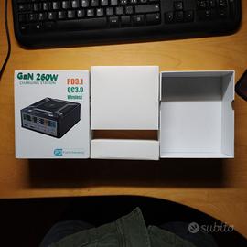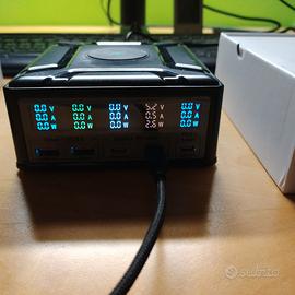 Prezzo nuova 60€ , vendo perchè non la ho mai utilizzata. Stazione di ricarica USB GaN da 260W 5 porte con Display LCD ricarica Wireless Ingresso: AC 100-240V 50/60Hz PD3.1 USB-C1 uscita: (Max 140W) PPS 3.3-21V/5A, 5V/3A,9V/3A,12V/3A,15V/3A,20V/5A,28V/5A Uscita USB-C2/C3: (Max 100W) 3.3-21V/5A, 5V/3A,9V/3A,12V/3A,15V/3A,20V/5A Uscita USB-A1/A2: (Max 22.5W) 4.5V/5A,5V/4.5A,5V/3A,9V/2A,12V/1.5A Uscita Wireless: 15W/10W/7.5W/5W Uscita totale: 260W max