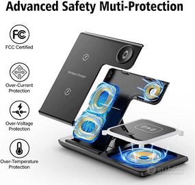 RICARICA RAPIDA: Chip ad alta tensione che richiede circa 2-3 ore per caricare completamente cellulare, orologio e auricolari con adattatore da 15W, garantendo un'efficiente ricarica wireless