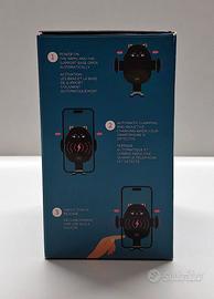 Supporto per smartphone con ricarica Qi integrata. Le “zampette” laterali si aprono e si chiudono.