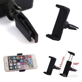 supporto universale smartphone, tablet, gps ecc, fino a 8,8 CM di larghezza. si attacca alla bocchetta dell'aria, piccolo da chiuso, snodabile, e ruotabile a 360 gradi per trovare la posizione migliore. si allarga a molla per inserire il dispositivo , senza dover premere nessun tasto, e fortissimo e tiene ben saldo, qualunque dispositivo delle dimensioni adatte.