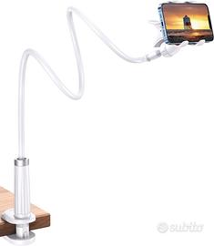 Supporto cellulare da tavolo, porta telefono con collo dell'oca, regolabile 360°, colore Bianco, misure in foto.