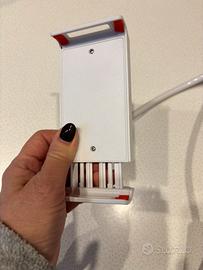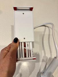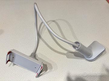 Presenta un braccio flessibile e regolabile per posizionare il dispositivo con diverse angolazioni.