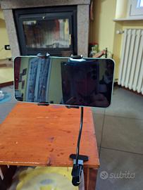 Supporto per cellulare da letto o tavolino. Braccio lungo e regolabile. Pinza universale. Come nuovo.