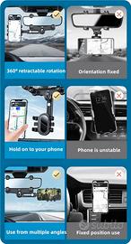 Supporto per telefono specchietto retrovisore, staffa per navigatore regolabile, supporto per cellulare universale per auto girevole a 360° e retrattile