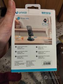 Supporto porta cellulare marca Unico vendo. Nuovo e mai usato. Si alza e si abbassa manualmente, ottimo supporto sia per cellulare che per tablet nuovo originale e in confezione originale