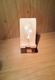 Supporto per smartphone costruito artigianalmente in multistrato e decorato con tecnica stencil. Linee pulite, stile naturale e ottima inclinazione per video, chiamate e lettura. Ogni pezzo è unico. Perfetto per chi ama oggetti creativi e funzionali.