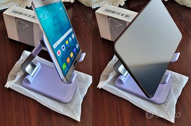 Supporto da tavolo per tutti i telefoni cellulari o tablet (NUOVO in scatola) angolo e altezza regolabil, si allunga e ruota per ogni esigenza visiva, si chiude a portafoglio