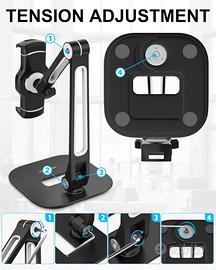 Supporto snodabile per Tablet e Smartphone | Da 4 a 11 Pollici Alluminio.