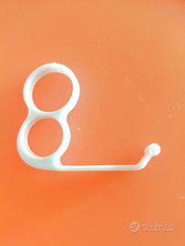 Il supporto é in plastica e si inserisce nelle dita facilmente sostenendo il telefono durante l'utilizzo
