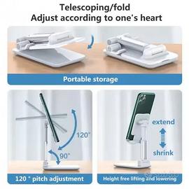 Supporto Telefono Pieghevole e Regolabile, BIANCO