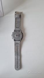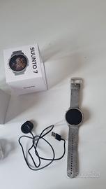 Smartwatch Suunto 7 con cassa in acciaio inossidabile e cinturino in tessuto. - Display circolare. - Pulsanti laterali. - Cinturino in tessuto grigio.