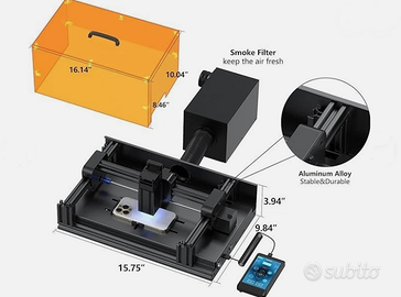Macchina laser per vetro posteriore Iphone e piccole incisioni su ogni tipo di materiale. Perfettamente funzionante usata solo due volte. Completo di Mascherine di protezione da serie 8 a 15, Occhiali, Alimentatore e Aspirafumi. Se vi serve, per Email vi mando il video del funzionamento.
