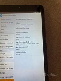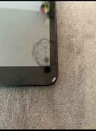Tablet nero in buone condizioni, funziona bene. Ha un piccolo difetto in basso a destra (foto) ma impercettibile e non influisce sul funzionamento del tablet. 4GB di memoria ma si può aggiungere una scheda di memoria (foto). Si possono effettuare anche chiamate.