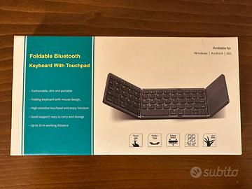 Tastiera Bluetooth pieghevole con touchpad, compatibile con sistemi Windows, iOS, Mac OS, Android e Microsoft, nuova mai utilizzata.