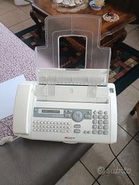 fax, fotocopiatrice, invio sms e telefono tutto in uno. FUNZIONANTE (vedi stampa fogli funzioni; non testato invio fax in quanto non ho più linea fissa). Fornito con scatola originale, cavo alimentazione e cavo telefonico. piccoli danni dovuti all'età: Manca un gancetto di supporto fogli (ma il reggifoglio è comunque sorretto dall altro) e graffi sulla parte frontale (vedi foto).
