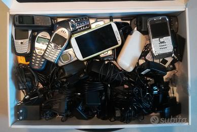Vendo solo in blocco n. 23 telefoni cellulari usati come da foto, più cavi vari per ricarica. I telefoni della prima foto sono tutti provvisti di batteria e il loro funzionamento non è garantito. I telefoni sono tutti di mia proprietà.