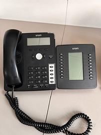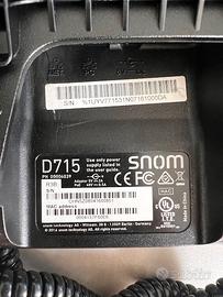 Telefono Voip Snom 715 con modulo D7 tasti aggiuntivi e n. 3 Telefoni Voip Snom D710. Caratteristiche principali 4 linee Voip, Display LCD a 4 righe, conferenza a 3, visualizzatore numero chiamante, black list chiamate, 100 numeri di memoria, DTMF, funzione presenza/elenco amici, viva voce full duplex. Alimentatori e cavi LAN non inclusi.
