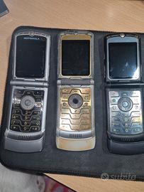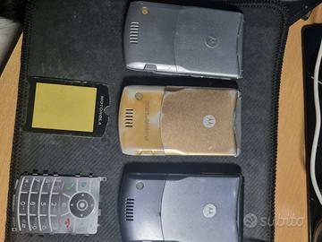 N° 3 telefoni Motorola con vetrino e tastierino da sostituire, + 1 lg Vintage vendo in blocco . riposti funzionanti solo batterie da sostituire.