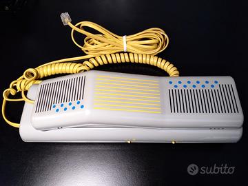 Telefono: Swatch Phone. Colore grigio con tasti gialli. Bello e divertente. Funzionante. Era un telefono mobile prodotto da Swatch negli anni '90. La sua caratteristica principale era la presenza di due cornette utilizzabili contemporaneamente, che permettevano a tre persone di parlare insieme sulla stessa linea. Un po' come avere un piccolo meeting telefonico privato. Era considerato un esempio di innovazione e creatività. Oggi, ottimo anche come complemento d'arredo.