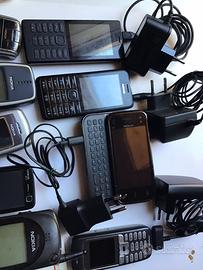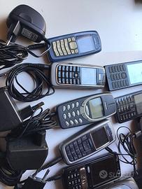 Collezione di n.9 telefonini NOKIA dal 2110 del 1995 in poi. Tutti con caricabatterie,libretti istruzione.