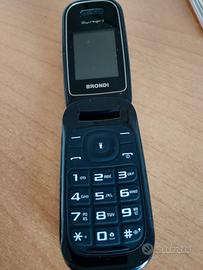 telefonino apertura a conchiglia marca Brondi, colore nero, modello Stone, display colori 2,4 pollici, fotocamera 1,3 mega pixel con flash Led, ideale per persone anziane, completo di carica batteria.