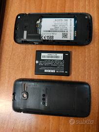 Alcatel 1060 con batteria ma senza carica batterie, cover posteriore con piccola crepa, non so se funziona in quanto non ho il carica batterie per testarlo.